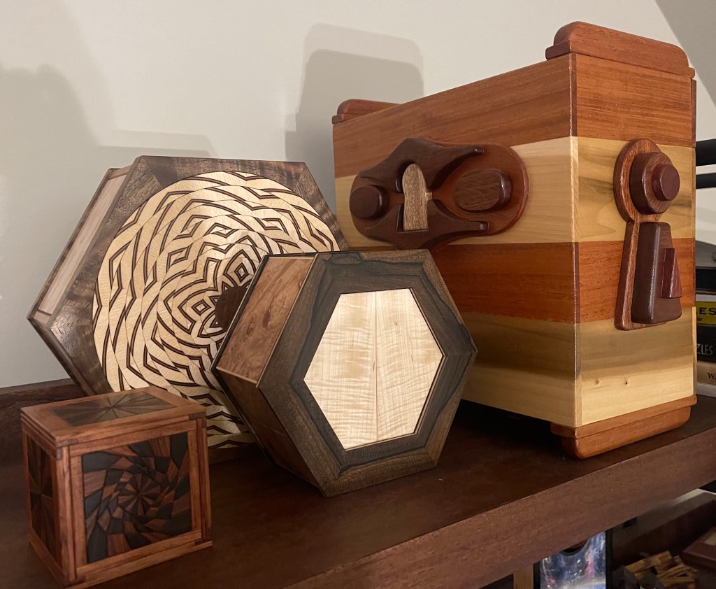 Solving and re-solving it multiple times, I have to shake my head in awe at the craftsmanship and ingenuity represented by the work. Kagen continues to astound and push the boundaries of the craft… it may not be a singing desk but it is still one of the best boxes I’ve had the pleasure to solve, not to mention one of the prettiest, and quite certainly the most daring.