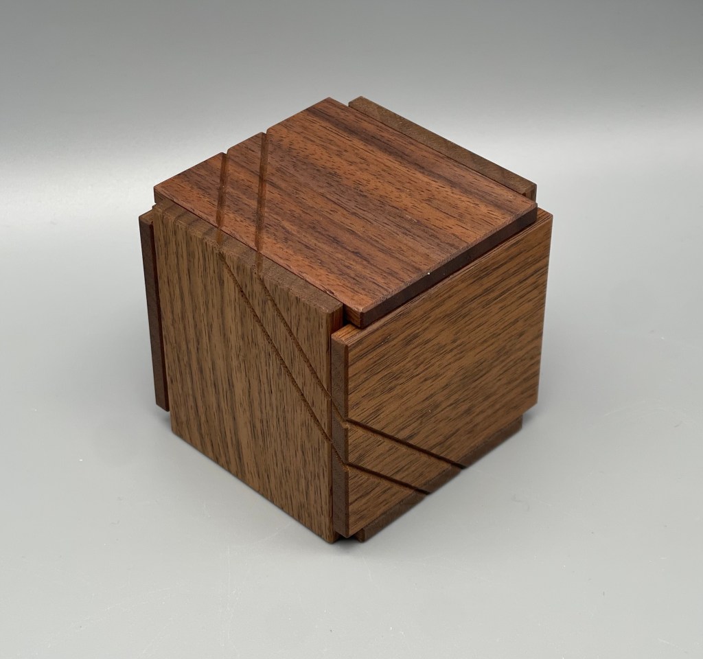 Kamei’s 2022 offering is a somewhat traditional-looking 3.25″ x 2″ box with two panels on the top and bottom. The aesthetic is one of the simpler of this year’s releases, with a trick that has grown on me since my first solve, which didn’t take me that long.