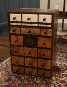 I am currently at a wall – I’ve unlocked 8 drawers and am now good and stuck. There are some things that I know do something somehow, but damned if I know what. Which is perfect – I am confident that it will continue to confuse and create contentment as I consider the controlled consequences and considerable options concealed by the content-creating craftsman’s contemplation of a cunningly convoluted puzzle (wow that alliteration got way out of con-trol).