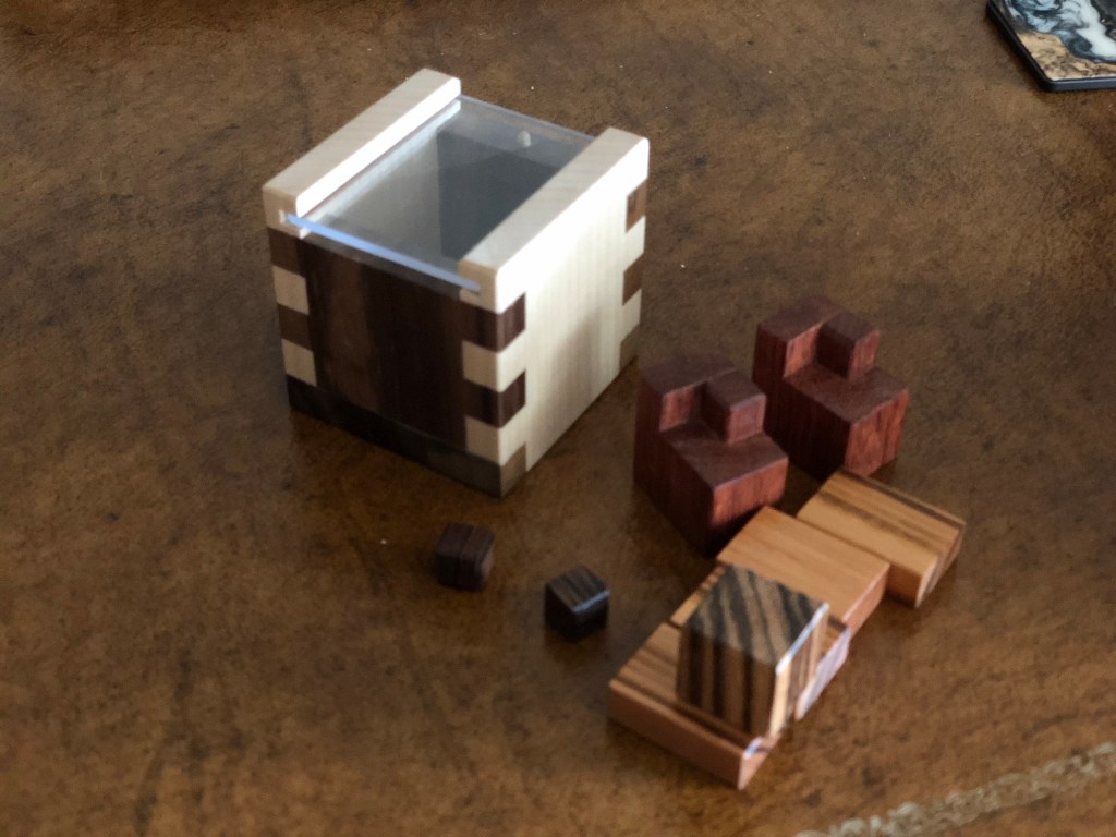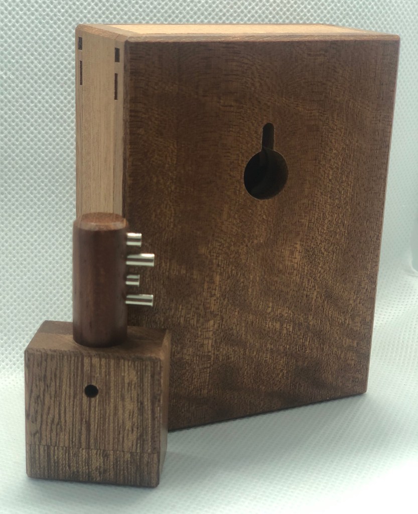 After gleefully removing the coin, I worked my way backwards through the reset – a couple sections still a bit tricky as I continued to develop my understanding of the puzzling at play. After re-solving and re-setting it a couple more times, I can confidently claim to completely comprehend the confounding cadre of coin release mechanisms nestling within this deceptively simple-seeming puzzle. And what a fun puzzle it is! It has an excellent rhythm as you work through several muti-step sequences that rely on discrete mechanisms and well-hidden sd discoveries: imagine if Rex’s best had a child with the Bolt Action series and then went on to marry Ansel and have a brief affair with Free Me 6. And if that doesn’t entice you, then I don’t know what you’re doing reading this post (unless you’re my Mom…. in which case: Hi Mom).