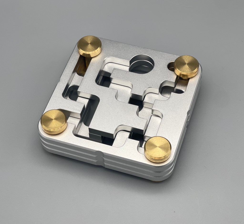 BM 1 – 6 appear almost identical, the only giveaway (aside from weight and, sometimes, a bit of noise) are on the tips of the sticks, with the number of concentric circles varying to designate which of the series you are currently looking at (some, including BMSD, also feature holes at the center of some stick tips). The series builds off of itself: the first is a classic, six piece burr, lovingly and perfectly crafted out of brass. From there, the series begins to add tricks, forcing you to think wildly outside the box at times as you uncover a way to unlock and disassemble the burr. The complexity of these trick openings increases as you progress through the ranks of the series, becoming ever more tricky and ingenious. If you like burrs and trick-opening take-apart puzzles (and who doesn’t?) then this is a series for you!