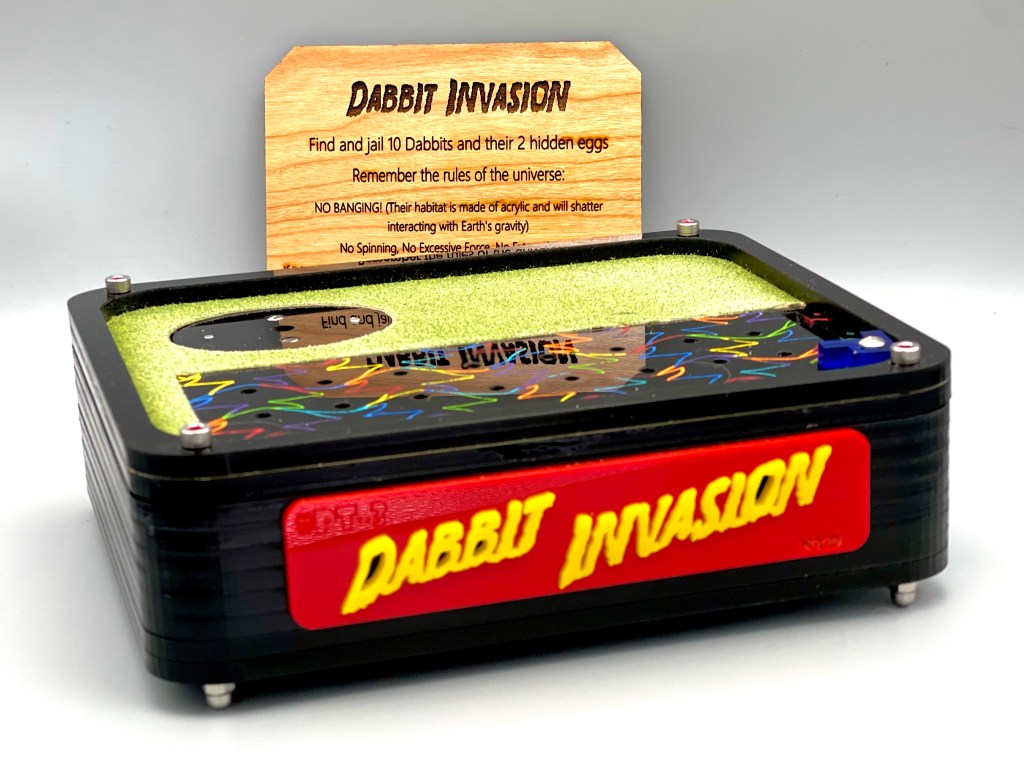 It seems that Rex had been running into some customs issues shipping coins internationally, which helped lead to some creative alternatives. Rex takes a thematic turn with Sanib, which eschews the coin for an angry-looking ghost that must be freed from where it is stuck behind bars in the hole that would typically hold a coin. The back has a narrow hole in one corner and there are a number of holes and panels on all four sides, along with a small protrusion on the top.