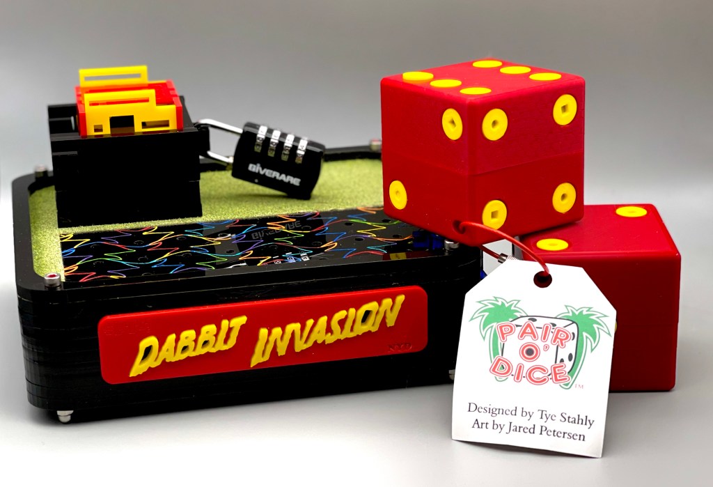 Speaking of which, this was the first RCR that I decided to completely disassemble (sorry, Johnny Five) to see exactly what is going on inside – I am glad I did as it is even more complicated than I had thought! It was very cool to see just how many little bits of acrylic are used and to check how closely my mental image matched the actual puzzle (I’d give myself a B-). I have since made a habit of disassembling his puzzles after solving them – figuring out how it all goes together can be a puzzle on its own, especially if you let it sit in pieces for a few weeks! Just be warned: there’s a lot of individual pieces in there, oftentimes more than you may realize (even in some of the simpler ones), so be sure to open it above a catch-all or dice tray (or whatever you tend to use). While the screws and such can be replaced, everything else is a custom piece and replacing those won’t be as easy.