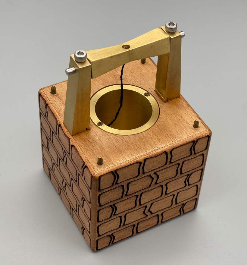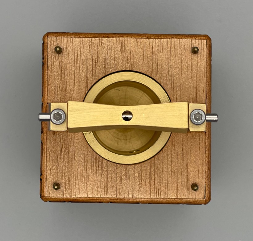 Aquinaldo takes things a bit further, increasing the thickness of the puzzle to further develop the complexity of the SM mechanism. There is an obvious double-layered panel passing vertically through the puzzle, with a skinny bar passing perpendicularly through the bottom. This puzzle also features a second goal, to “find the hidden secret,” adding more puzzling to the experience. This added goal shows how Rex is looking at ways to maximize the square footage the puzzles’ footprints provide, giving the puzzler more to do sometimes even after the coin has been released; in this case, the additional goal extends the solution a bit and leads to a better understanding of the puzzle’s complexity. The reset is mostly the puzzle in reverse, although I found the second goal to give me a bit of trouble as I had to work out what had happened where; a bit of logic and observation and you can clarify things and get the puzzle back to its initial state. This all makes for a fun SM puzzle, although perhaps not overly difficult.