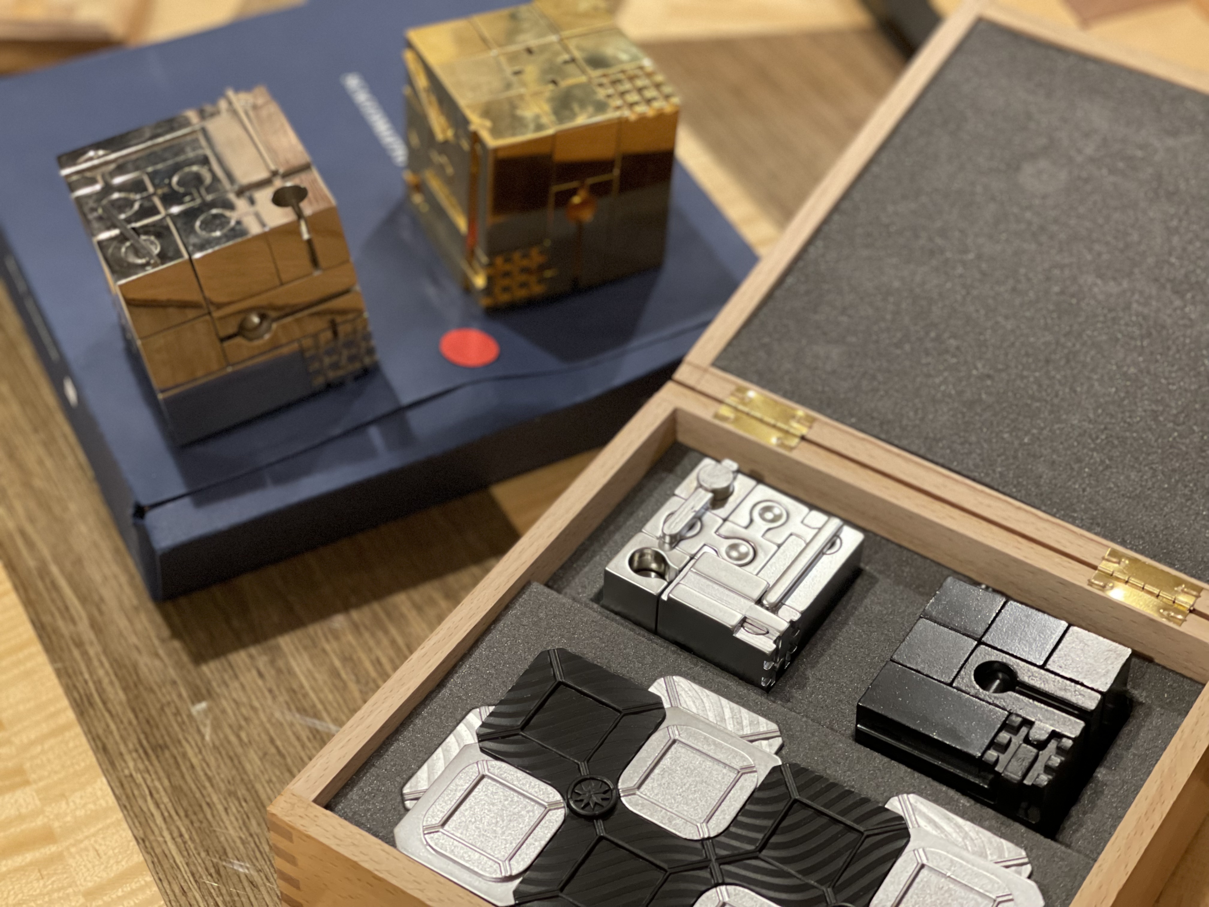 Sugimoto’s box is another of this year’s personal (and probably public) favorites, with a unique solution that sees the box becoming more beautiful as you progress, an interesting design choice that demands repeat play. These changes are surprising and have me tempted to leave the box in mid-solve for display (my spoiler sensitivities are of course too strong to permit this, allowing for a resistance to temptation rarely exhibited by my life choices).